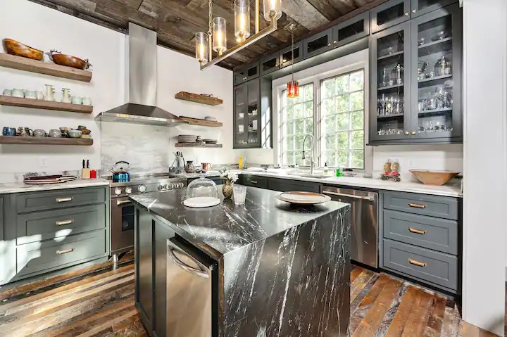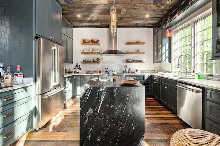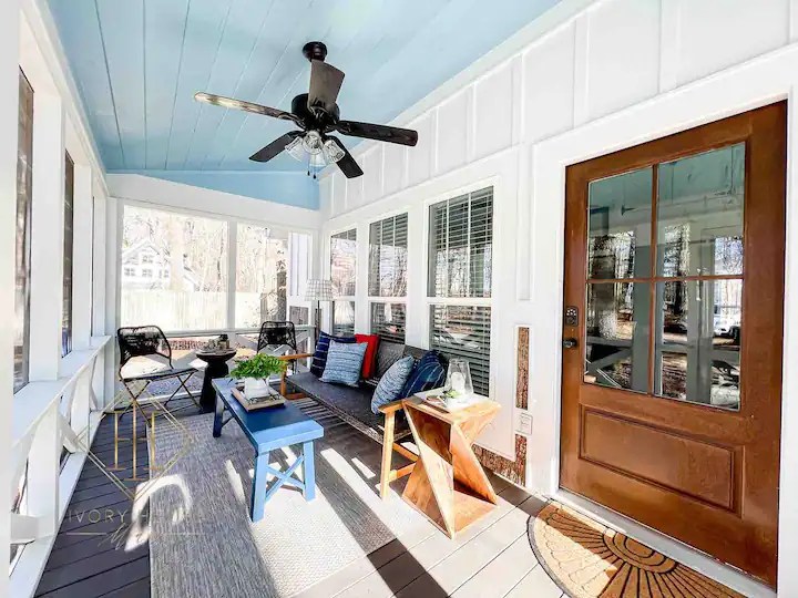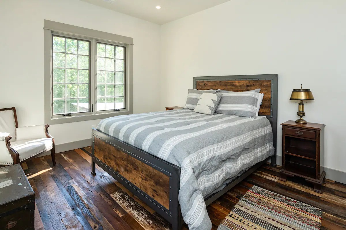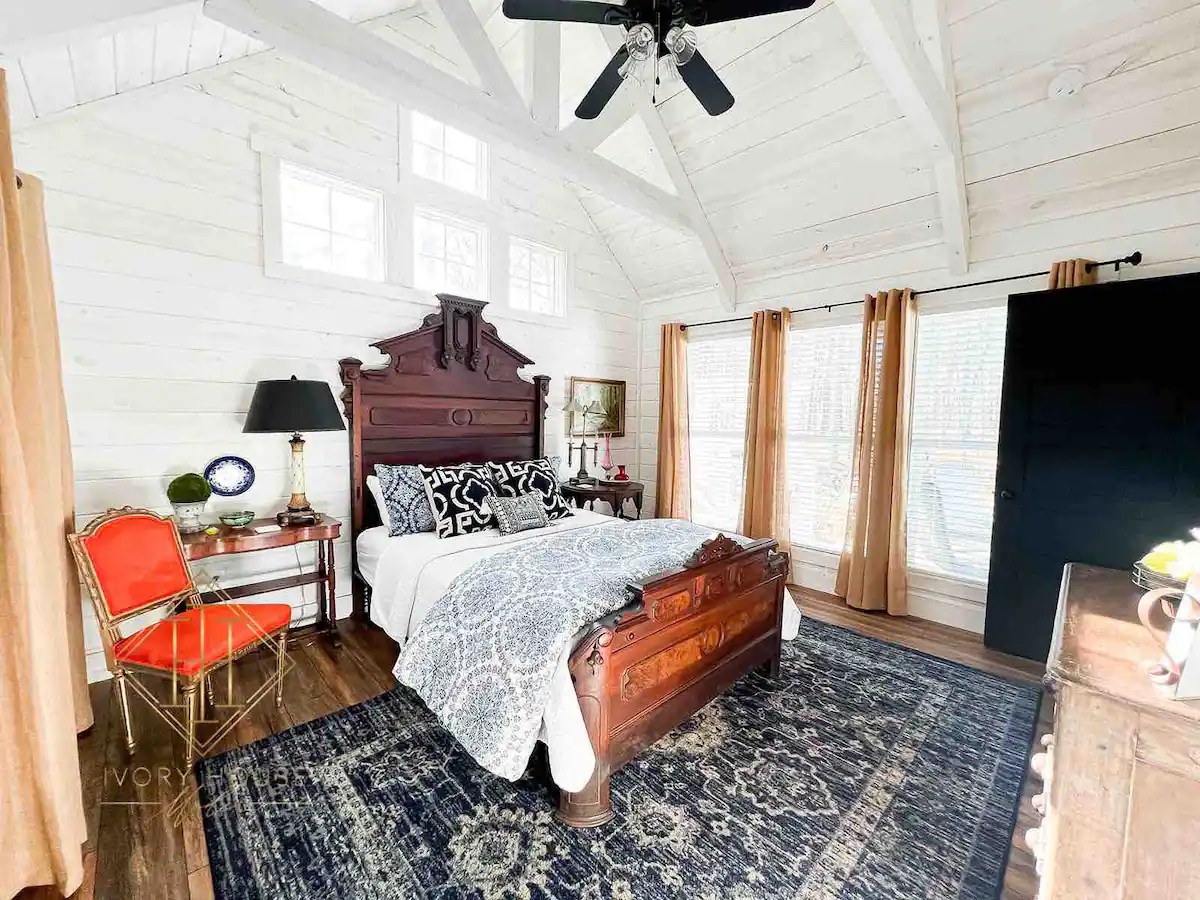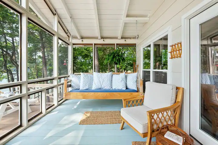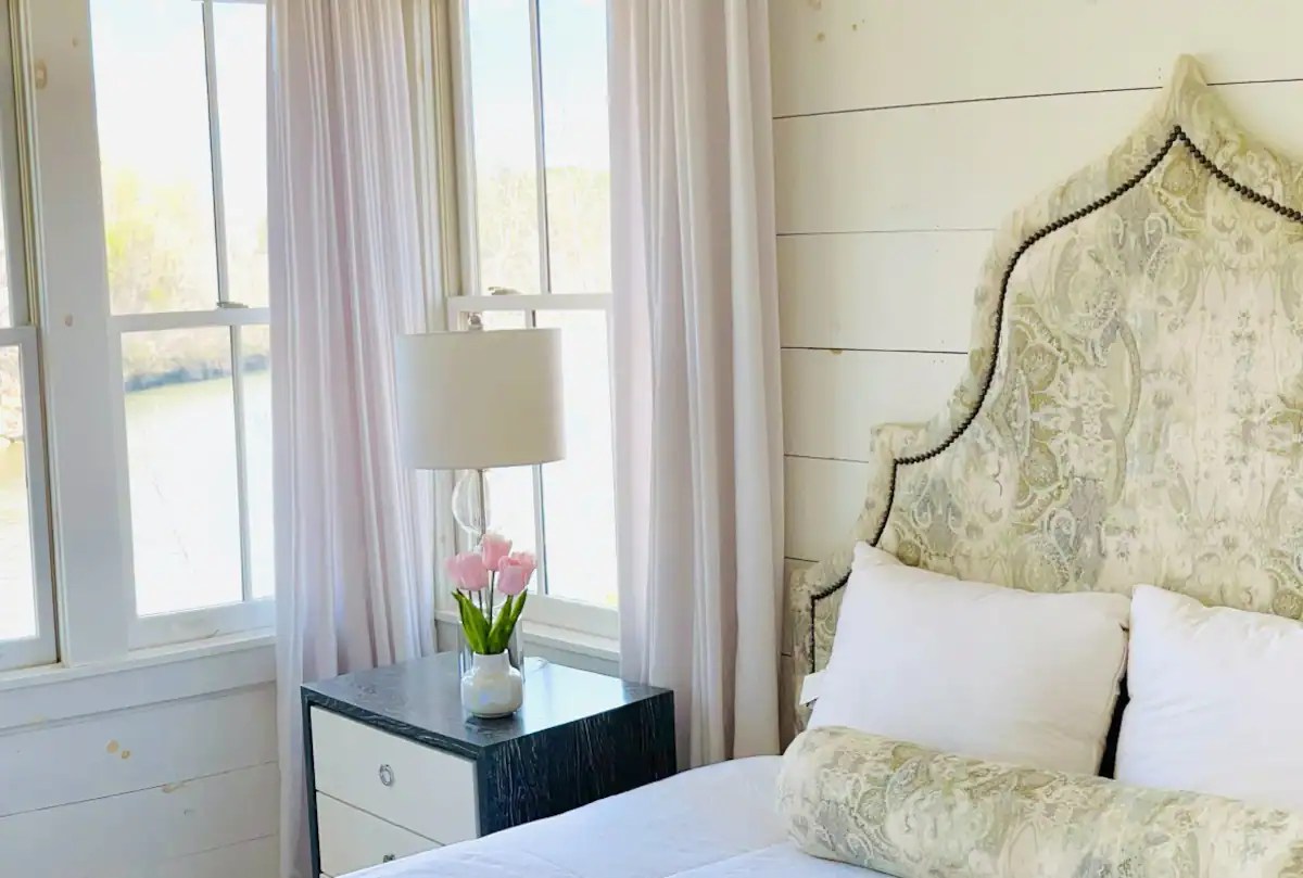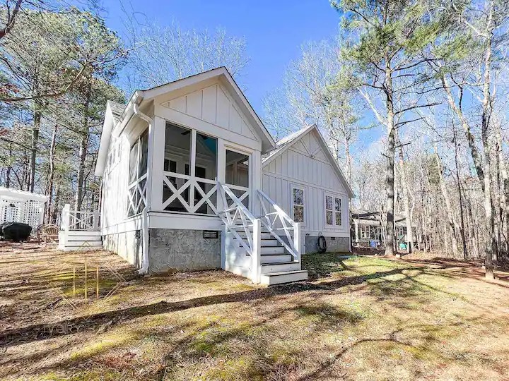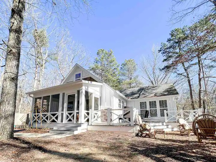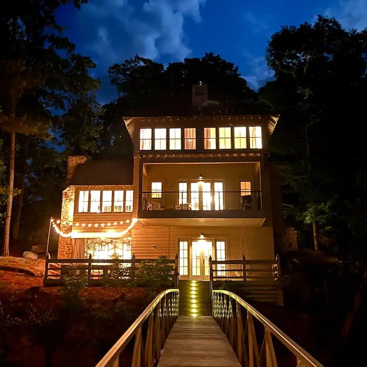 This home had to make the list. Featured in the Birmingham Home and Garden magazine, this lake house is filled with unique details. I have always wanted to design a bathroom with a sink in front of a window. It allows for plenty of light when getting dressed in the morning. The custom headboards in each room add unique characteristics to the design. Averaging about $470 a night it is a steal because you can sleep 10 people. The kids will love the bunk room accessed by the ladder. This home is perfectly located within a gated, private development with access to the hilltop community pool and clubhouse.