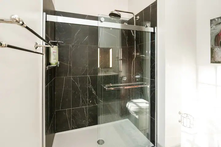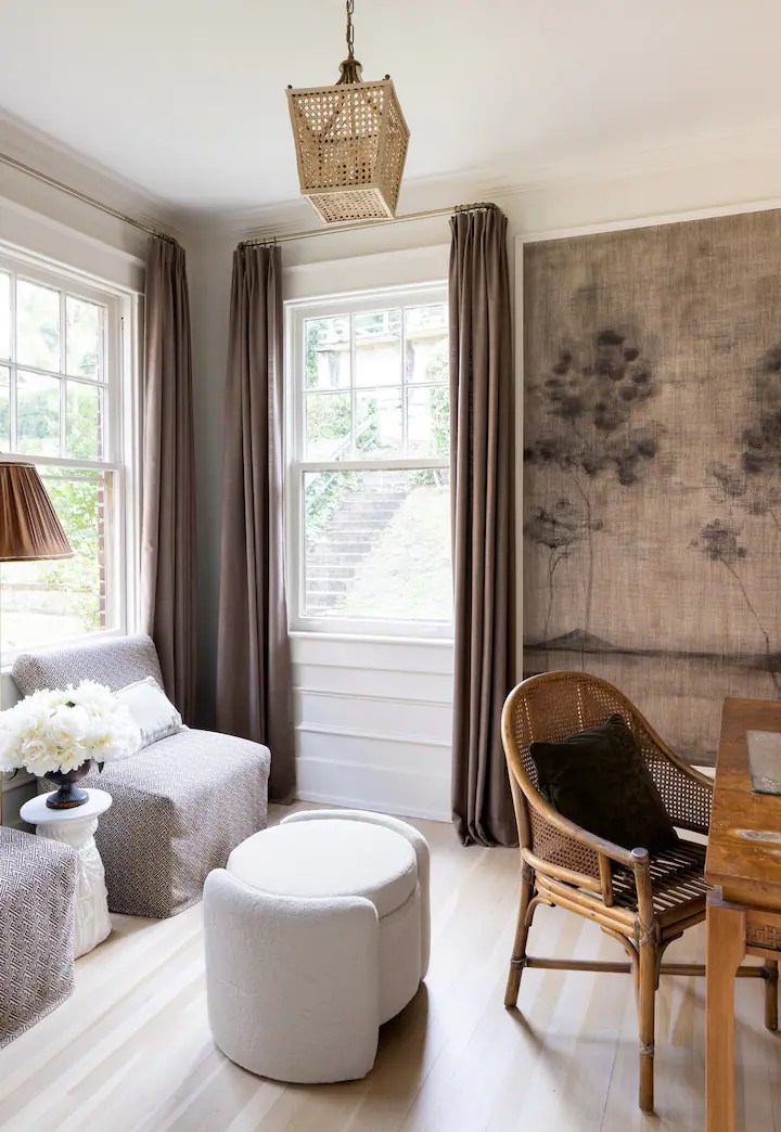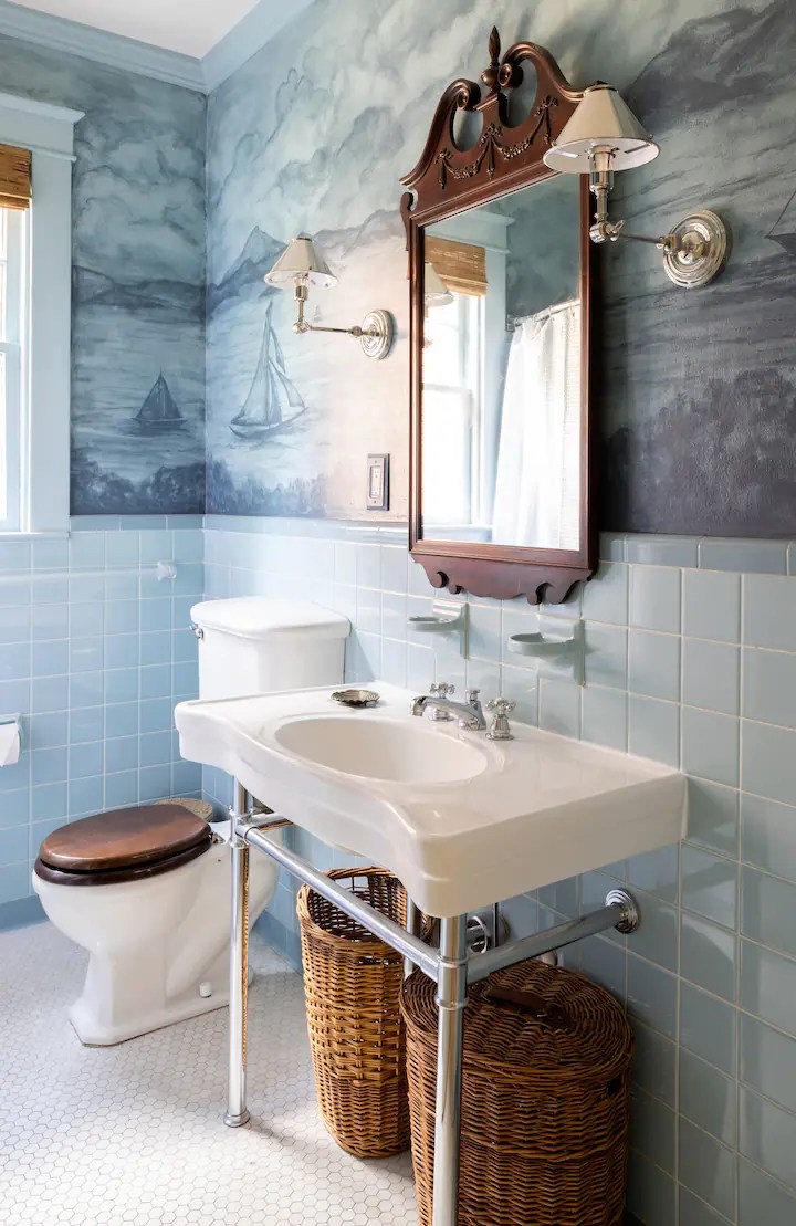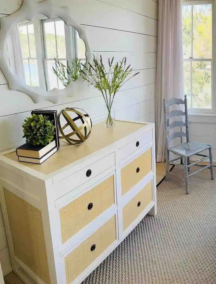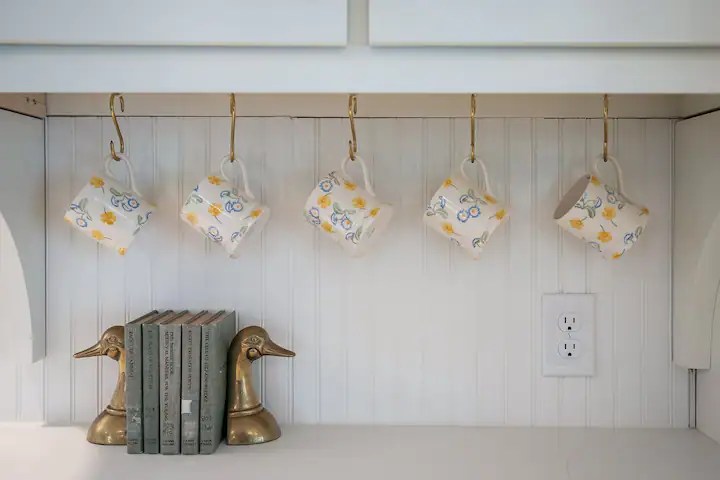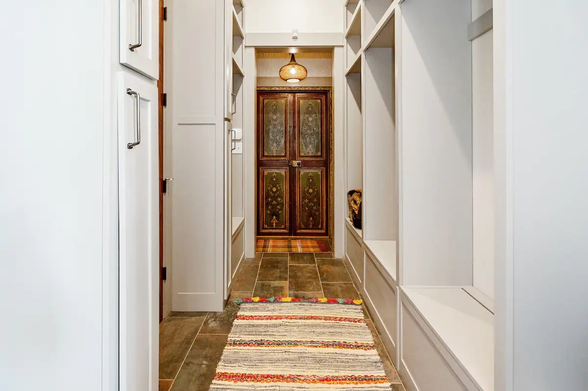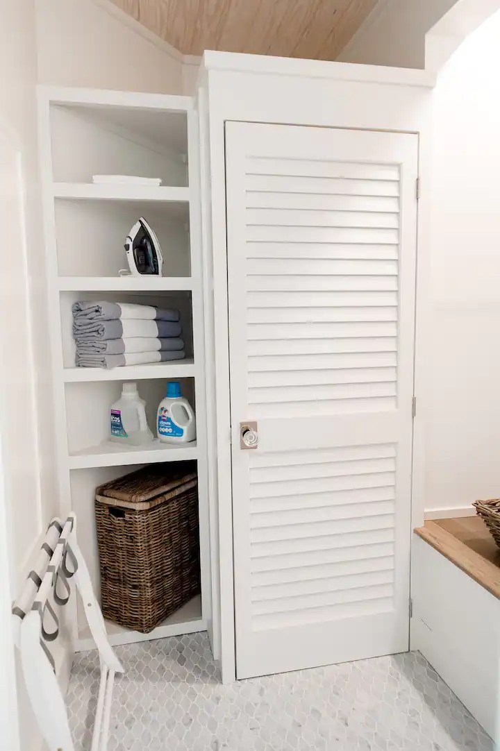 The living room in this cottage makes me want to book a stay. Jennifer truly has an eye for design. She filled the home with unique designer details, from the gorgeous kitchen, to the wallpaper ceiling in the guest bedroom. This cottage makes any guest feel like they have stepped into a tranquil escape from the busy world.