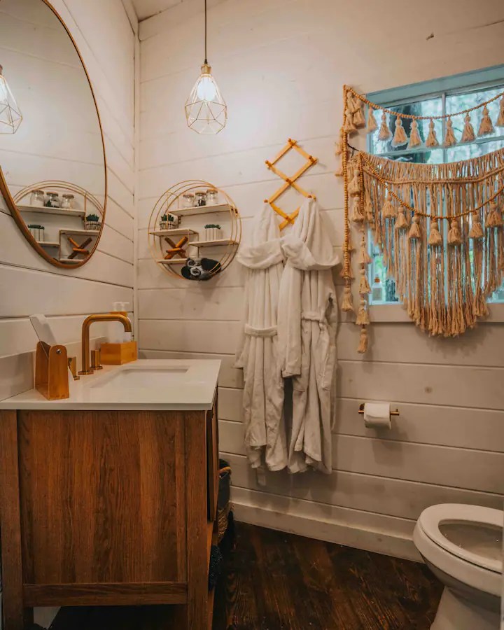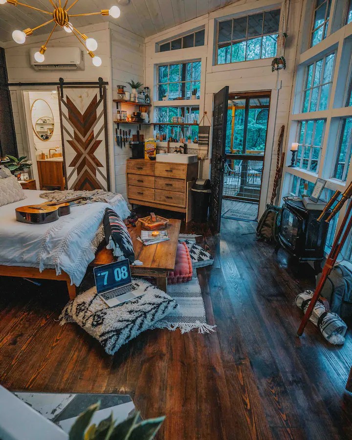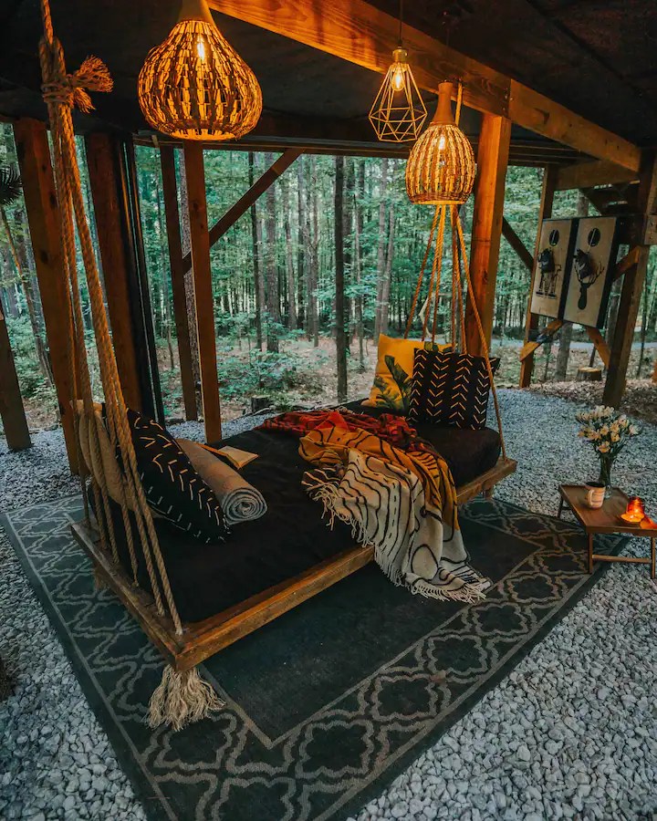 As soon as I saw this Airbnb, I wanted to come stay. It is perfect for a couple reconnecting. The best part is there is no television or Wi-Fi. Yes, you read that correctly. The whole point of this Airbnb is to give you and your significant other a romantic weekend. It is totally isolated except for the drive-in. No pets or kids are allowed. The tree house sits 15 feet from the ground in an eclectic bohemian style. The bathtub in the bedroom looks so romantic. Who else wants to stay here?