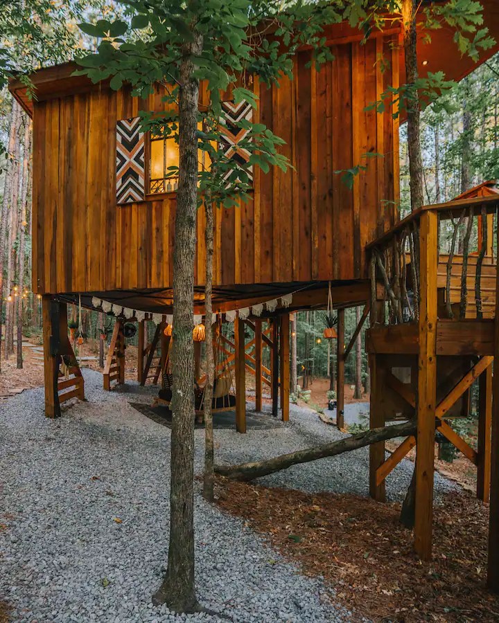 The Coosa County Treehouse overlooking the lake is such an unusual home. The views from this cabin are stunning. The kids would love the outdoor swings and the playroom upstairs. With plenty of space to spread out and relax, this will surely be a win for everyone. I would enjoy watching a movie with the kids outside on the porch swing. This treehouse is at the top of my list of places to take my family.